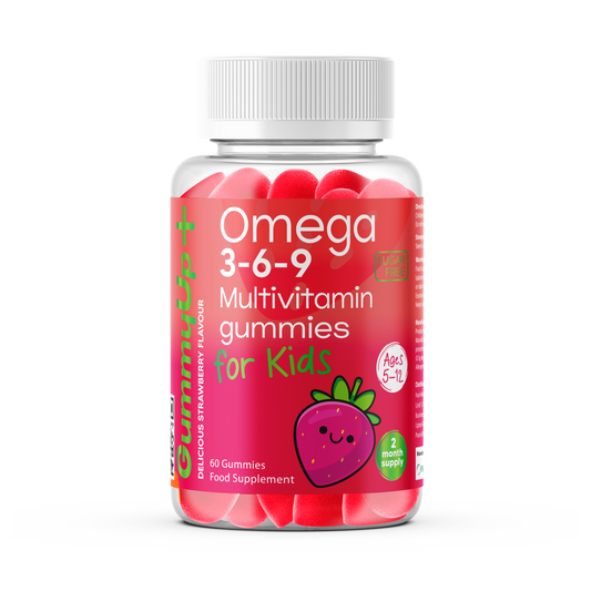 Kids Omega 3-6-9 Multivitamin Gummies (Ages 5โ12) Sugar-Free Strawberry Flavour GummyUp+ 2 Months Supply
